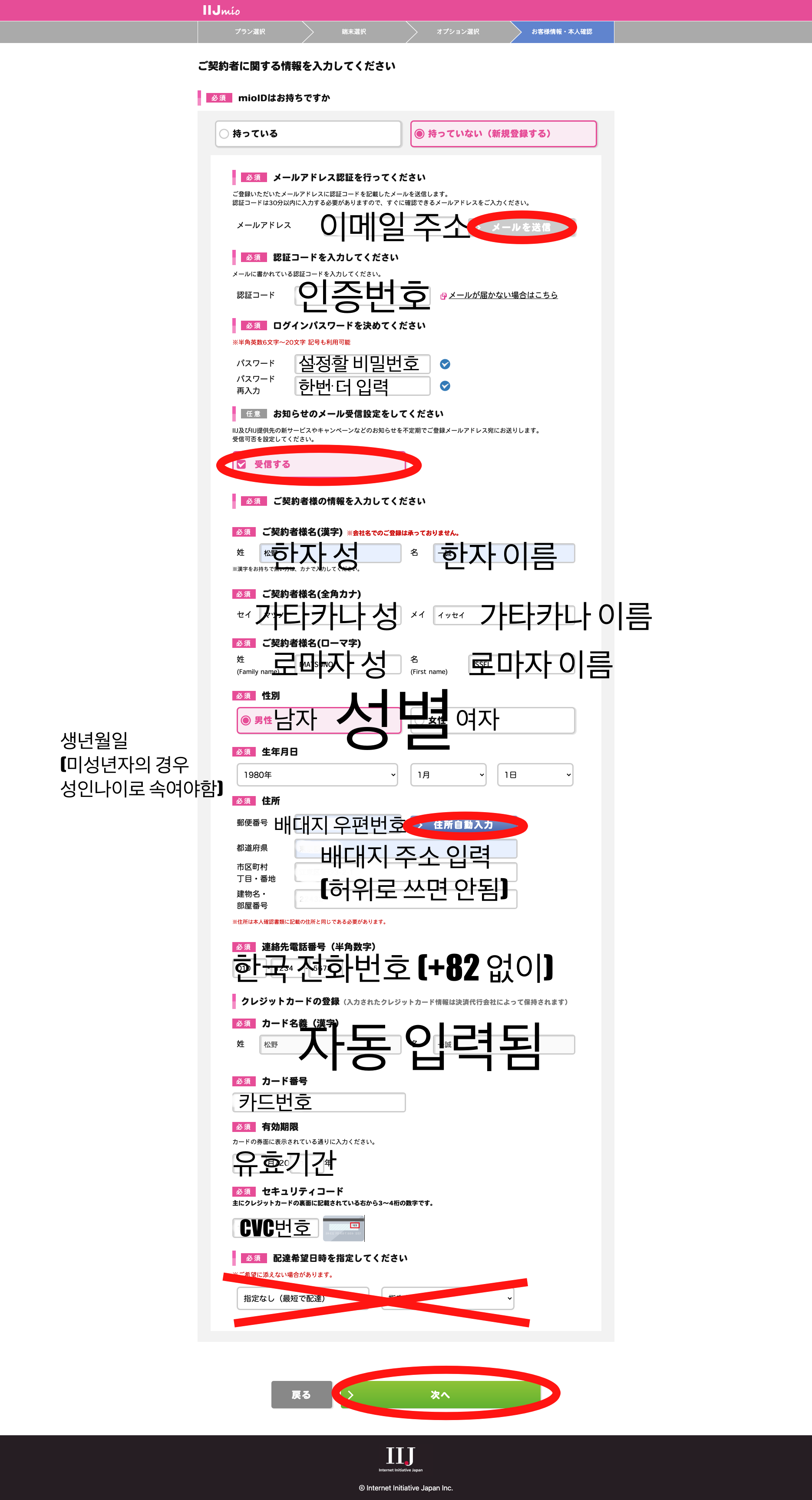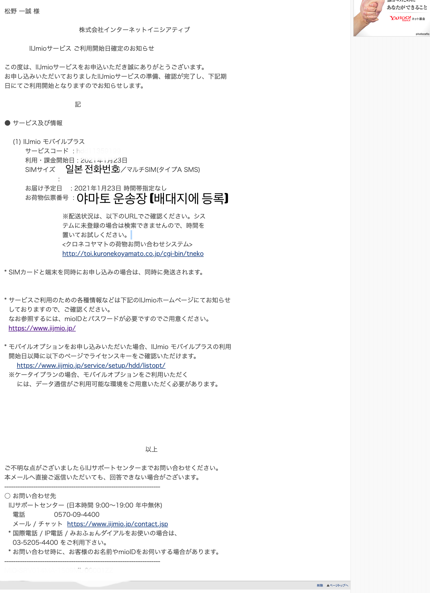 사진과 같이 입력하시면 됩니다. 그 다음에 완료가 되고, 며칠 이내로 IIJmio에서 이메일이 옵니다.
